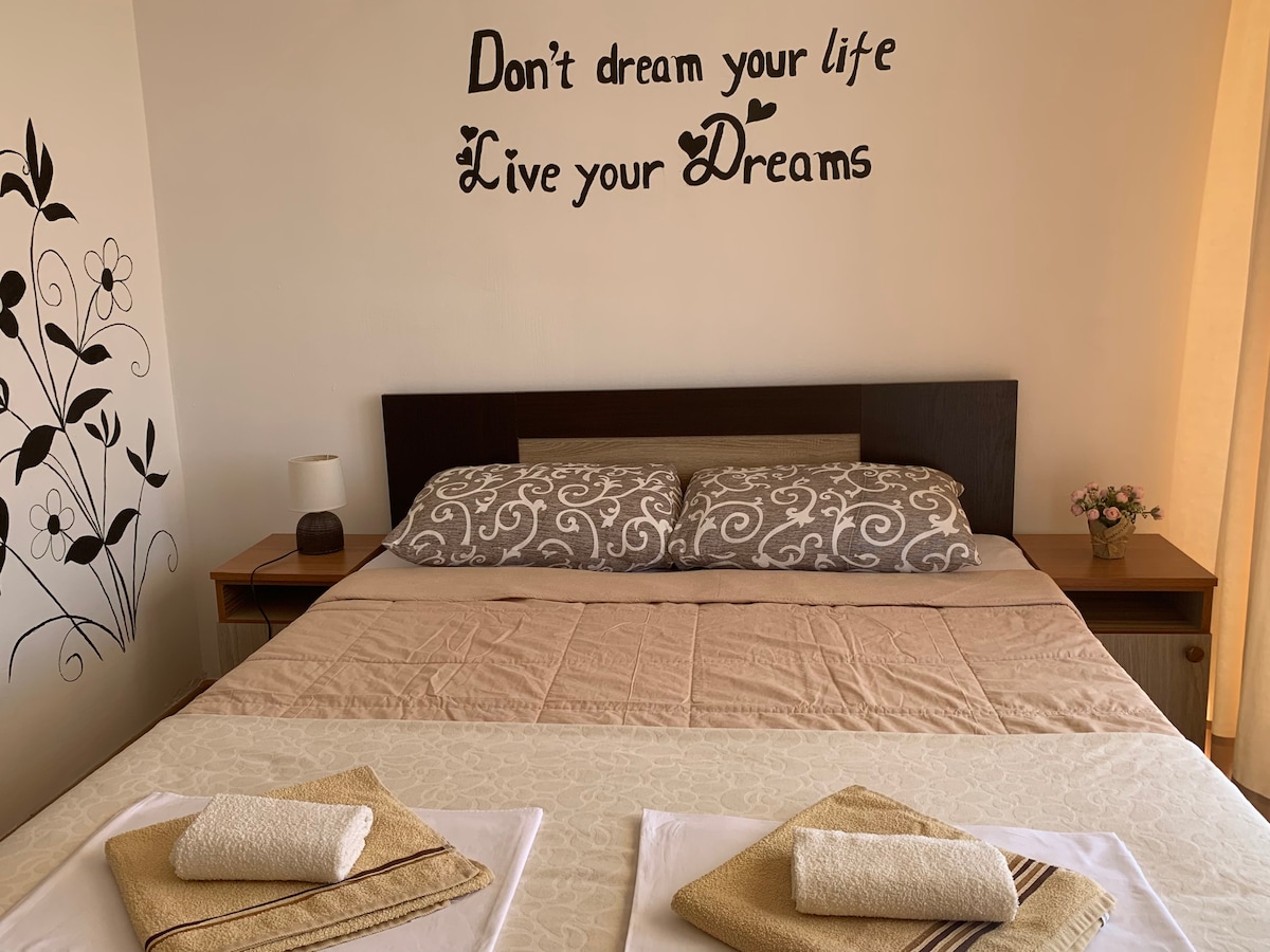 公寓距離海灘和Ulcinj老城區約3分鐘步行路程。雖然它位於市中心附近,但非常安靜。 公寓最多可入住6人,非常適合家庭度假。 配有免費WiFi和免費停車位,周圍有橄欖樹環繞的大露臺。