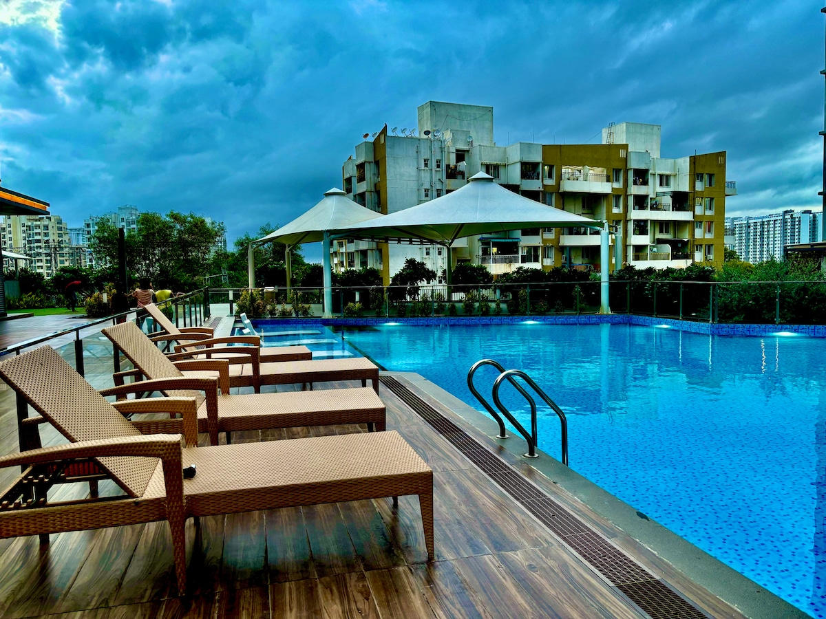 我們很高興在東浦那市中心為您提供慷慨的住宿體驗。 享受靠近著名區域Mundhwa、Amanora Mall、Magarpatta、Kharadi、Hadapsar、Koregaon Park和MIT的便利。您的設施 AC 1.5T 免費WiFi 電梯 全自動洗衣機 RO Water 模組化廚房 廚房用具 43吋HD電視 攪拌器研磨器 液化石油氣和爐具 大冰箱 Microvan 免費雜貨 ·熨鬥 洗手乳和洗手液 -毛巾 特大牀 衣櫃 沙發 監控電視 泊車(室外) 變頻器