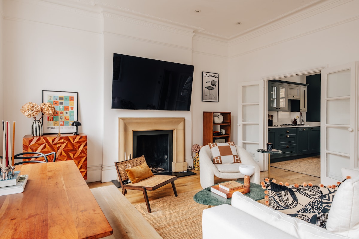 Nestled in the vibrant and chic neighborhood of Marylebone, this stunning Georgian flat offers an unrivaled base for exploring London. Perfectly blending modern British elegance with timeless charm, this is your opportunity to stay in one of the city’s most coveted locations. A beautifully curated space adorned with designer Timothy Oulton furniture and striking contemporary art. The flat exudes sophistication, with thoughtfully designed living areas that balance comfort and style.
