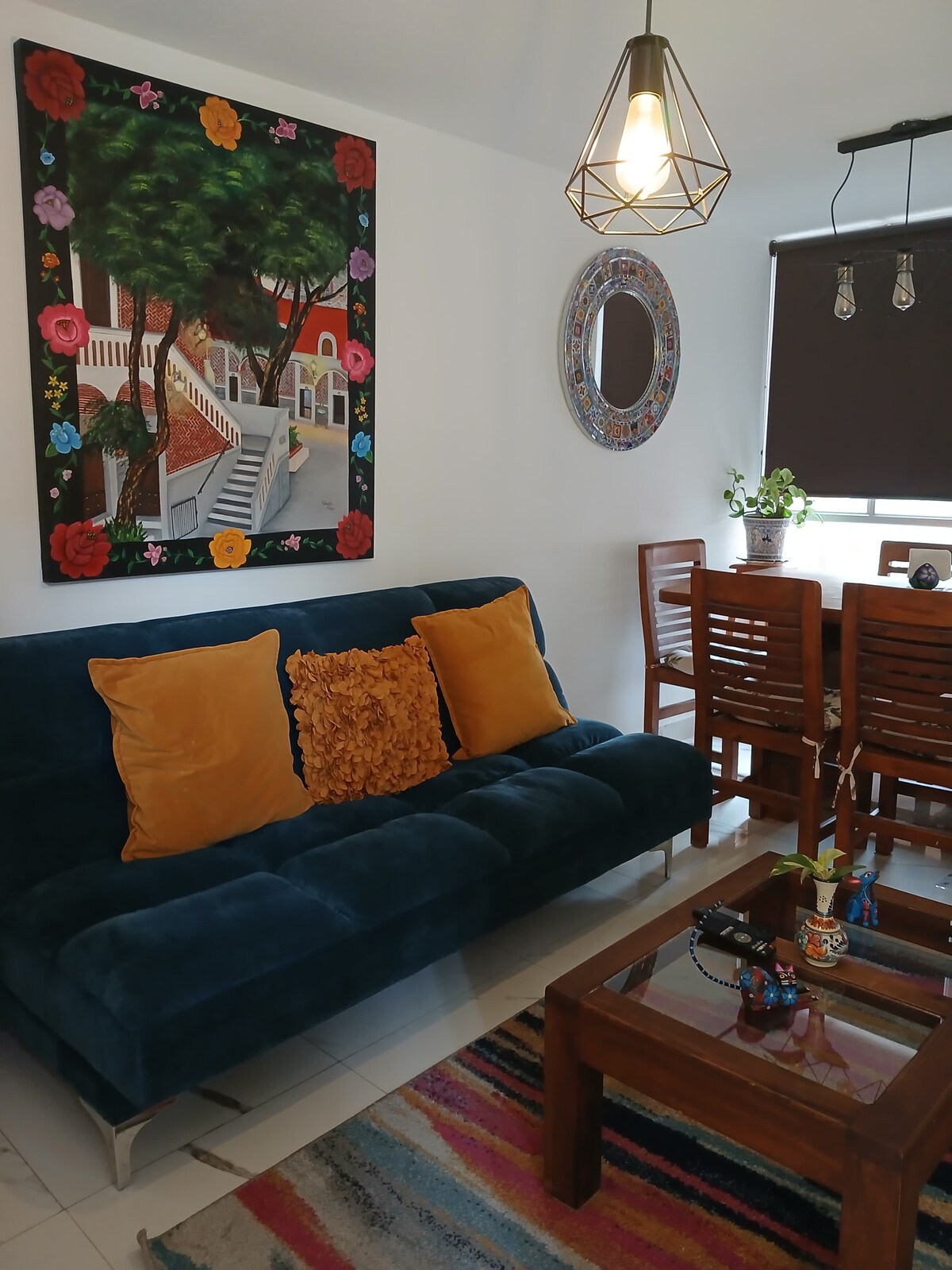 This gorgeous home features a bright and open interior with colorful furnishings and stylish accents. Notice the Mexican tiles in the kitchen. Admire the expressive artwork, and lounge on the vibrant blue sofa in the living area. The home's central location provides access to many of Puebla's historic sites. Walk to the iconic Puente de Bubas, roam the Biblioteca Palafoxiana, and explore the museums all while stopping to experience the fantastic local foods and drinks.