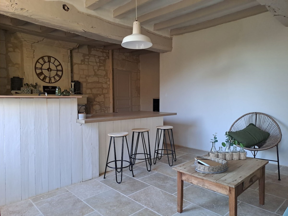 在一個安靜的、四周環水的房產中,我為您提供一個47平方米的獨立單層小屋。 這裡擁有放鬆住宿所需的一切舒適設施:客廳配有設備齊全的開放式廚房、1 間臥室、淋浴間和獨立廁所。 您可以享受戶外空間,包括露臺和花園休息室,並可自由進出樹林。 您將處於各種旅遊活動的十字路口(30分鐘到達盧瓦爾河畔,1小時到達未來城,1小時到達瘋狂谷)