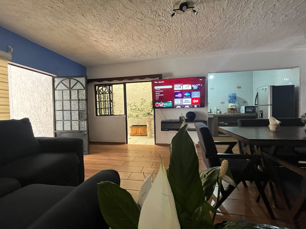 我們位於Tlaquepaque的中心,這是Juarez街上的一個神奇小鎮,已經是半步行街。 重要的是要提到,公寓外沒有停車位,我們與停車場有1個半街區的協議。 您將位於市中心的最佳位置。 我們有一間主房間,有自己的浴室和加大雙人牀。其他房間有2張單人牀,可以組合成雙人牀,屋頂的第三間房間配有牀是非常簡單的房間。
