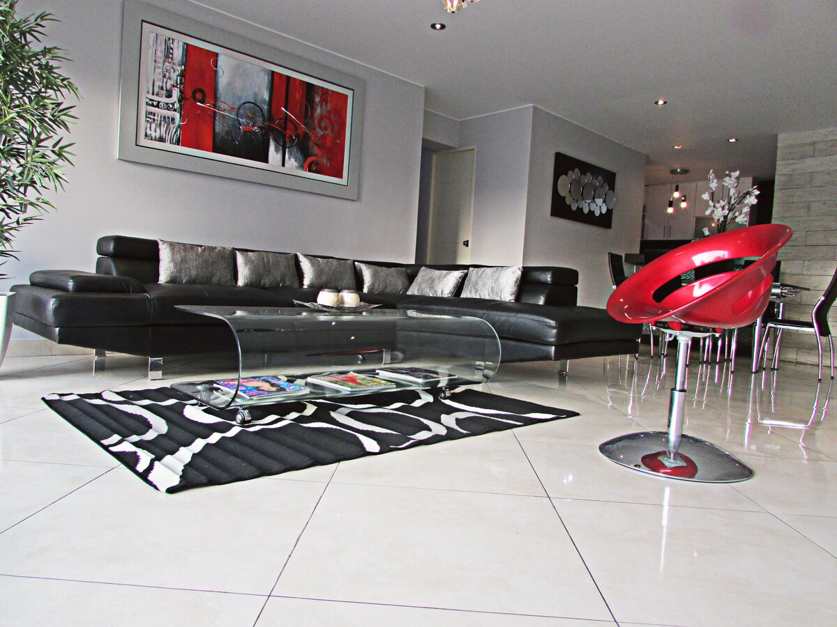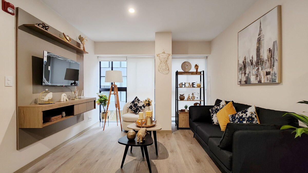 現代公寓,配有露臺,家具齊全,設備齊全,位於米拉弗洛雷斯市中心,距離肯尼迪公園僅兩個街區,步行10分鐘即可抵達巴蘭科最好的區域。 與公共交通系統的連接非常方便。 如果您還有其他需要了解的事項,請與我聯絡,我很樂意為您解答問題,協助您在利馬度過美好的時光!