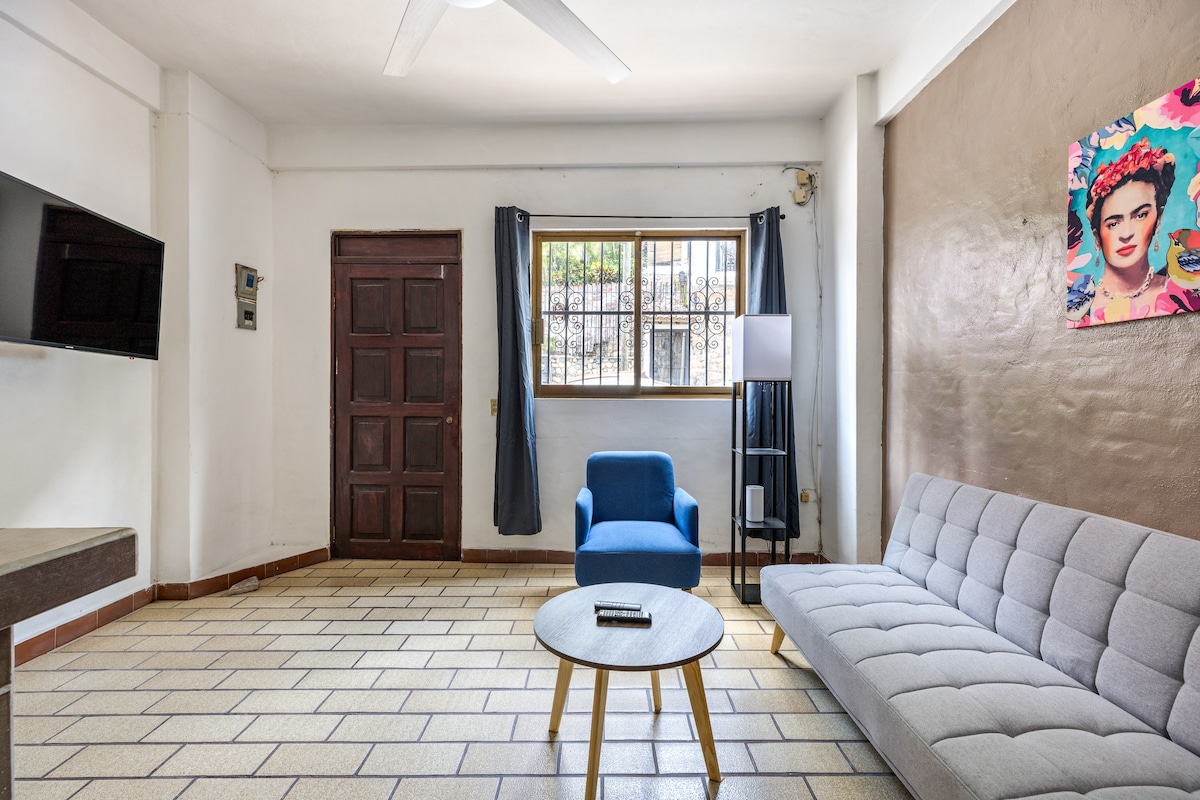 ★★King Bed★★ ★Breathtaking Views of the Bay ★Dipping pool & terrace ★ Old Town Puerto Vallarta 7 minutes walking ★English TV US-CAN Channels ★ 2 TV's 2 A/C's (LR & BR) ★High-speed WI-FI★★ ★Filtered Drinking Water ★Covered Free Parking ★Local Host, born & raised in PV ★Located in the upper area of Amapas with tall windows for a very nice panoramic view of the Bay & mountains ★ Uber to and from Old Town or the beach is only $2-$3 USD aprox ★Pets less than 20kg/45lb dog/cat MANDATORY to ask first★