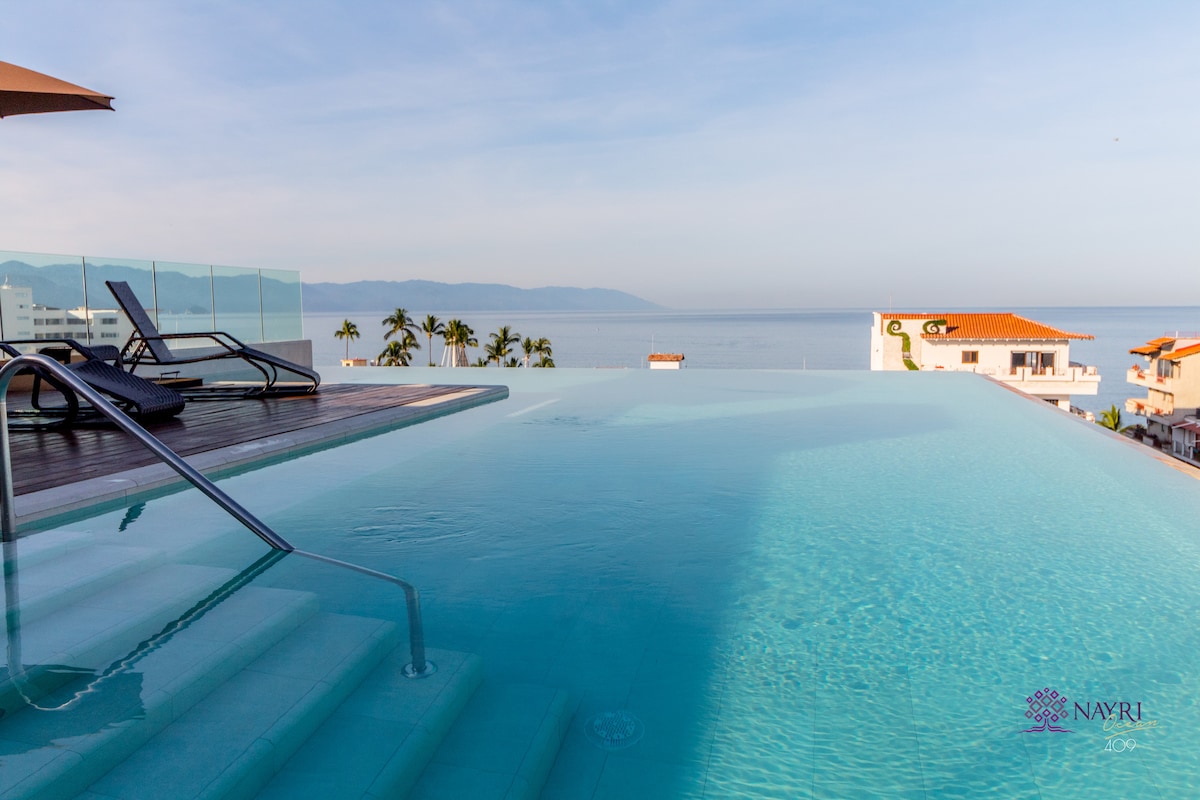 海景、屋頂日落,以及巴亞爾塔港的最佳景色就在你的門口。 這間現代化的1BR公寓位於羅曼蒂卡區中心的豪華105 Sail View的11樓,距離Playa Los Muertos僅三個街區。 走出門即可前往咖啡館、畫廊、海灘俱樂部和夜生活......然後回到家中,享受安靜、高度和一望無際的太平洋景觀。 早晨在陽台享用咖啡,下午在無邊際泳池放鬆,傍晚欣賞夕陽融入海洋,感受海上生活的美好。