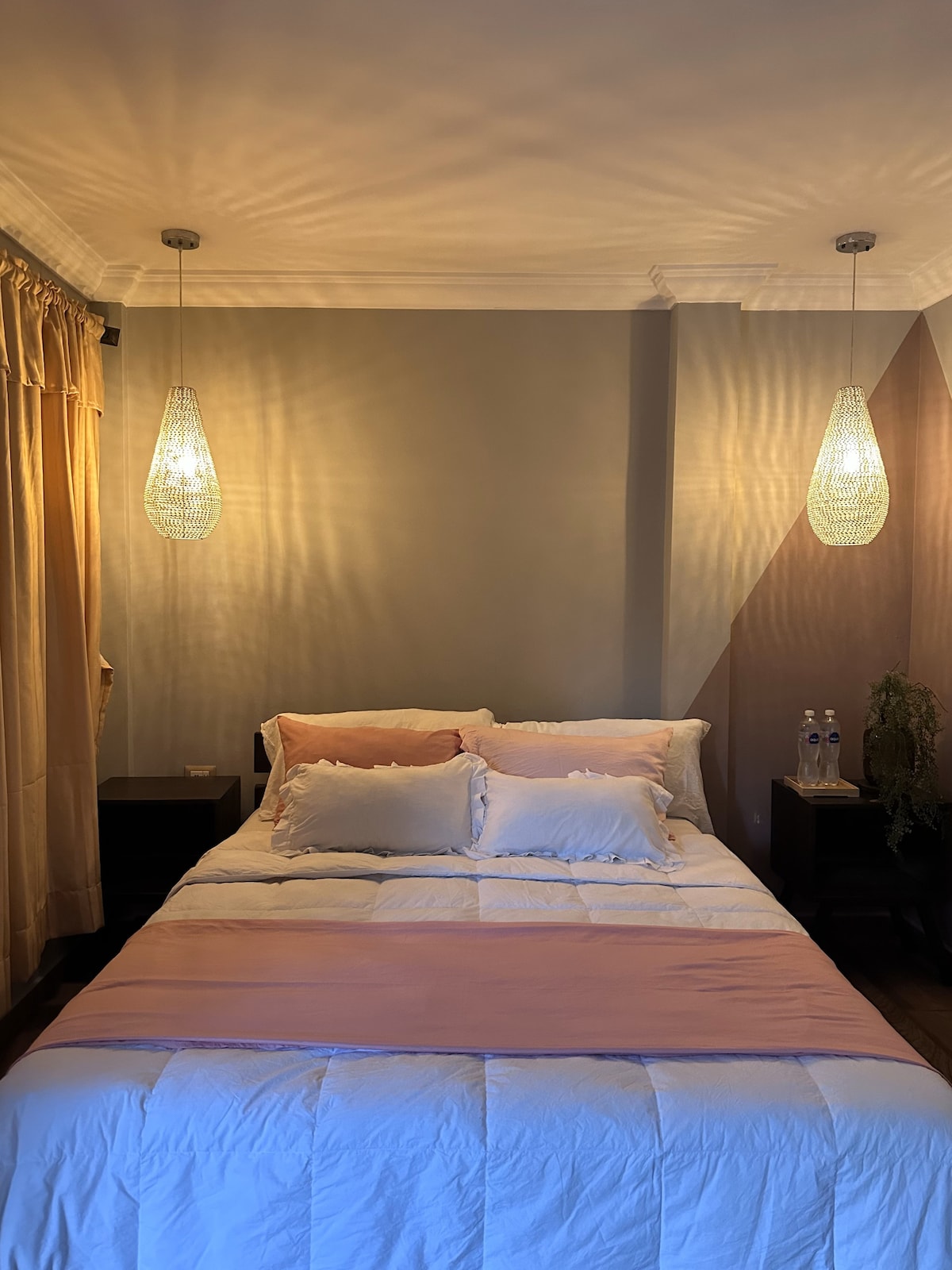 想像一下,在Apaneca-Ilamatepec火山脈前的豪華小木屋中醒來嗎? 在距離Juayúa村15分鐘的「Vista Cabin」,你可以將這個想像變成現實。 這間小屋專為情侶設計,配有1張雙人床,可容納3人。 客廳配有沙發牀、配有酒吧和餐廳的全套廚房,以及燒烤和篝火空間,增添了舒適的體驗。 這間小屋可通往建築羣的花園和泳池區域。