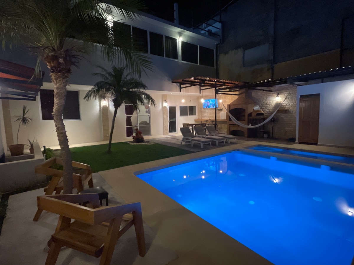 房子位於安靜的私人小區,非常適合休息,配有遊泳池和開放式餐廳,配有S-Mart電視,可計劃放鬆的一天,距離黃金地區的Glorieta de la Diana Cazadora海灘5分鐘路程,靠近購物廣場、餐廳和酒吧。 800公尺是Sams Farallón ,非常靠近Av Cuauhtémoc、Maxitunel、Soriana、Aurrera、加油站、Oxos、藥店、教堂和更多商店。 在這個獨特而寧靜的度假勝地放鬆身心。
