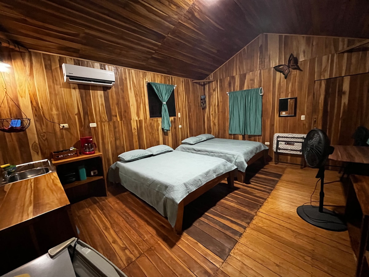 距離Playa Negra 1公里的小型新Loft式平房。 私人和設備齊全,讓您舒適地享受旅程。 我們位於最美麗的海灘附近,如Avellanas、Junquillal和Playa Negra (開車2分鐘),這是哥斯達黎加最好的海浪之一。 步行即可抵達餐廳和迷你市場。 它配備高速WiFi、冷氣、設備齊全的廚房、大床、配備熱水的私人浴室和自己的露台。 共用泳池