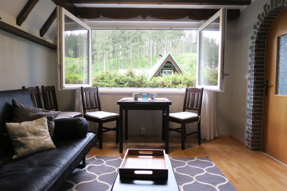 親愛的房客, 歡迎來到Carlsbad附近Krusne hory的小屋頂公寓。地理位置非常適合冬季運動或參觀周圍的水療城市。 有三間房間:配有用餐區域和客廳的廚房,以及兩間配有雙人牀的臥室。 第五張牀位於客廳。 如有需要,可使用配有燒烤區的夏季廚房、配有工作室的車庫,非常適合摩託車或自行車。