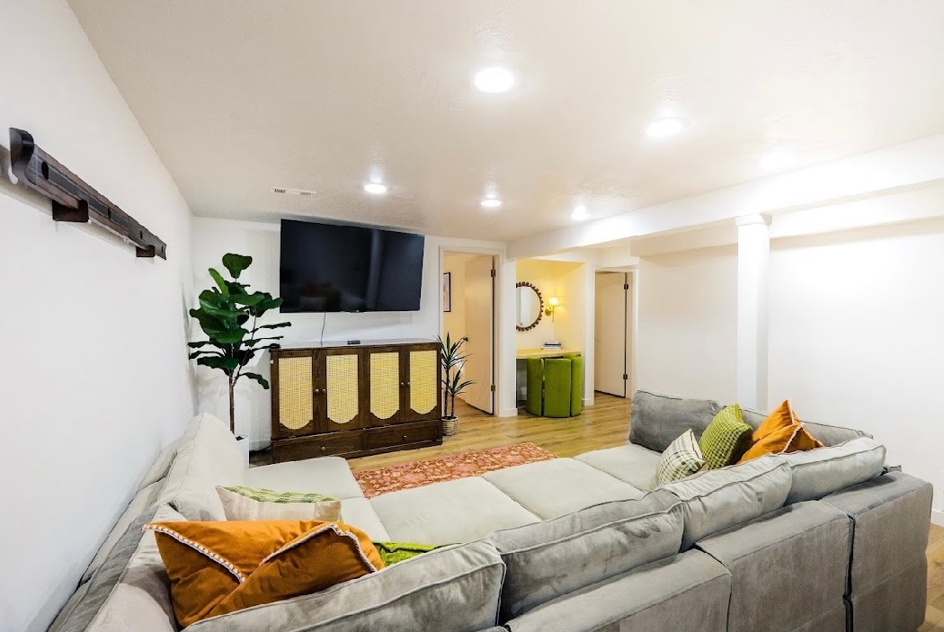 新裝修、獨立、地下室公寓,有獨立入口。我們的空間是一間大型單間公寓,配有全尺寸廚房、洗衣機和烘乾機,供您私人使用。 * *請注意,公寓上方是房東的廚房區域。由於房子裡住著一個7口之家,因此可能會有相當多的行人和噪音。** 距離SLC機場約15分鐘,距離雪鳥(Snowbird)約37分鐘,距離鹽湖市中心約27分鐘。此租賃要求租戶可以安全下樓。