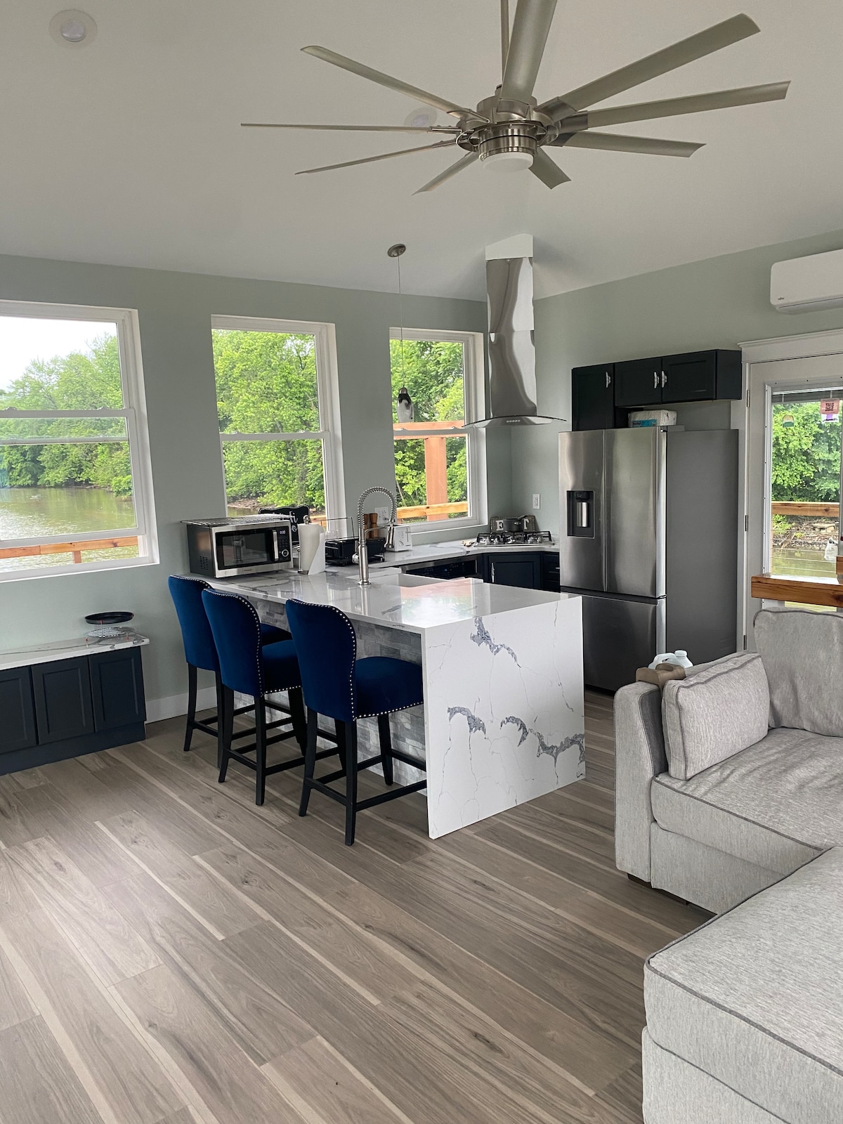 Amish Paradise有一樓的客廳、餐廳和廚房的開放式樓層概念。 二樓有3間臥室。上樓後,我們可以從拱形窗戶看到森林的側面景觀。 然而,我們最喜歡這個房源的部分是從露台周圍欣賞美景! !它有一個俯瞰我們的房源和馬蒂公園(Marti Park)的美景!我有沒有提到這所房子曾經是真正的阿米什家園?😉
