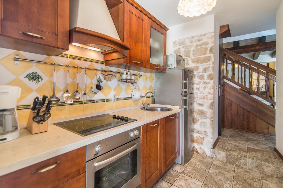 Welcome to our cozy one bedroom penthouse flat on the island of Brač boasting 65 sqm space and a balcony. Our family house is a traditional Dalmatian stone house built only 6 m from the sea on the property of 1500 sqm hidden in the shadow of 50 year old Mediterranean trees. Those who want to spend their vacation in the quiet place next to the sea should come to us – to our little village of Bobovišća na Moru on the southwest side of the island.