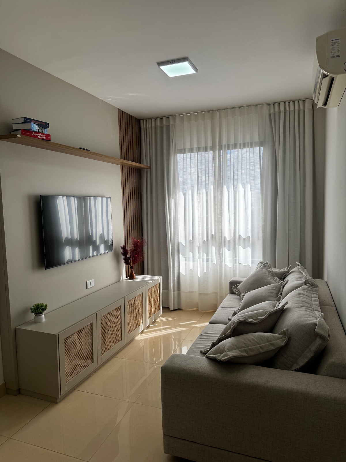 探索這間舒適的雙臥室公寓,非常適合您入住! 該空間位於高速公路附近,有明亮的客廳,配有智慧電視、沙發牀和空調、設備齊全的廚房和現代化浴室。 非常適合情侶或小家庭入住,提供舒適和實用性。