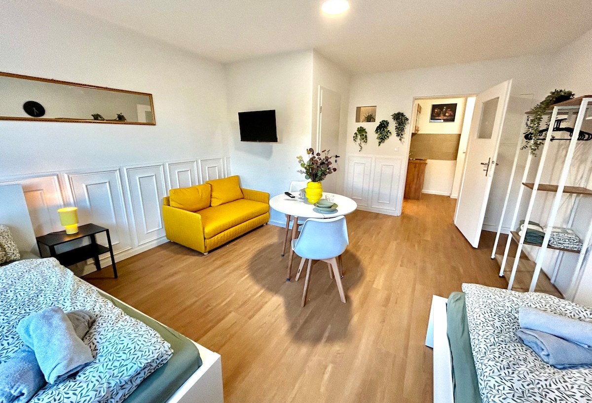 In the heart of the Rhine-Neckar metropolitan region, you'll find a green oasis – the Park Island! Our beautiful and modern apartment features a bedroom with a double bed and walk-in closet, a living room with a fully equipped kitchen and sofa bed, and a bathroom with a shower. You're just a one-minute walk from the stunning park with a beach and a variety of sports facilities. The Festival of German Film is also just a few minutes away on foot.