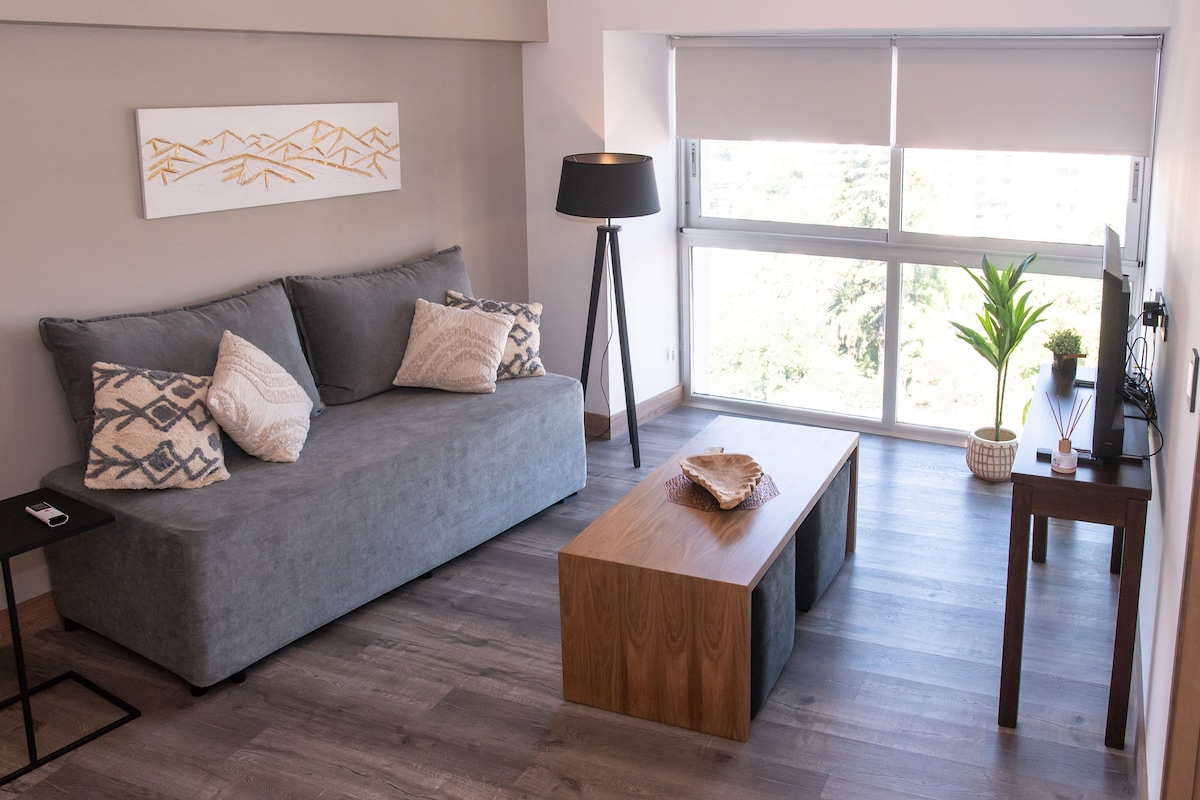 超級舒適的複式公寓,位於住宅大樓的頂樓上。 全面裝修和設備。 它有一個私人露臺,可欣賞壯麗的景色,可以在城市中欣賞日出和山上的日落。 地理位置極佳,非常適合了解和享受門多薩。 靠近一切:距離Calle Arístides一個街區,有最好的酒吧和餐廳;距離市中心和聖馬丁公園( San Martín Park )幾個街區,距離地鐵火車站和自行車道網絡僅幾步之遙。