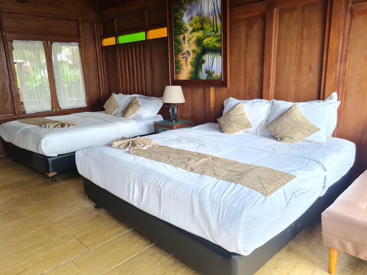 Tempat bergaya dan unik ini menjadi awal perjalanan yang tak terlupakan. Nikmati suasana kamar deluxe mezanine kami dengan 2 tempat tidur dan sejuknya alam pegunungan di hutan pinus.