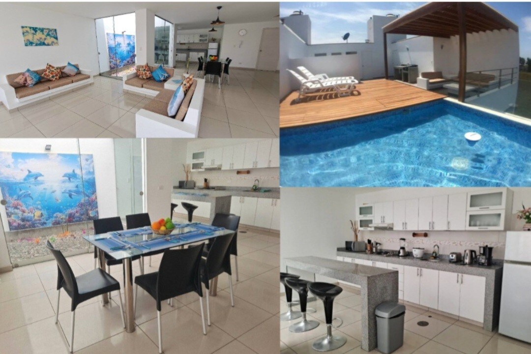美麗的鄉村別墅,配有泳池。位於阿斯皮蒂亞,距離利馬1個半小時,距離萊昂25分鐘,距離亞洲大道30分鐘。非常適合放鬆身心,擺脫日常生活。配有WiFi、50英寸電視(可收看Star +)、4間臥室、5張雙人床、泳池、7間浴室(4間全套浴室和3間無淋浴間)、營火、烤架、2個露臺(一樓和二樓)、5輛車的停車位和寬敞的花園。廚房配有微波爐、冰箱和全套餐具。我們歡迎寵物入住。