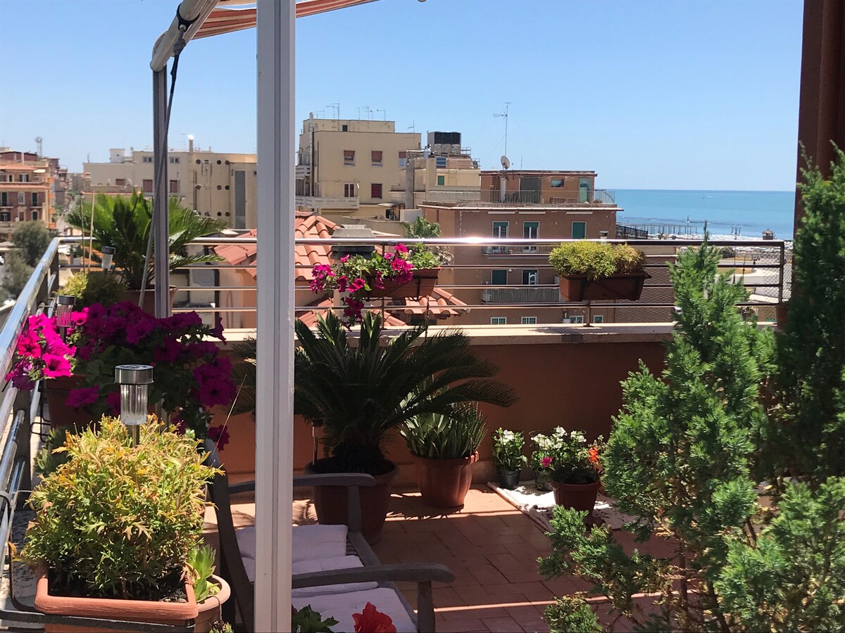 Delizioso attichetto con terrazza e balcone con splendida vista mare. Si trova al terzo piano di una palazzina d'epoca restaurata (senza ascensore). E' composto da soggiorno con divano letto, camera da letto, cucina, bagno, può ospitare fino a 4 posti letto
