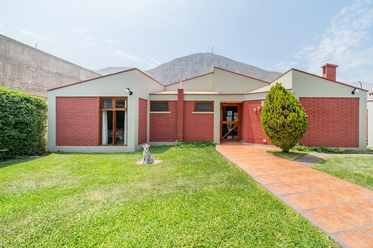 離開城市,在我們溫馨的鄉村別墅享受獨特的體驗。 享受利馬附近全年陽光普照的最佳氣候。 泳池、充足的花園、燒烤區和泥爐。 位於只有5間獨立房屋的公寓。 舒適通風的空間。 設備齊全的廚房。電視和高速WiFi。 私人泊車位。寵物友好。 非常適合尋求寧靜的家庭、情侶或小團體。 放鬆的鄉村!