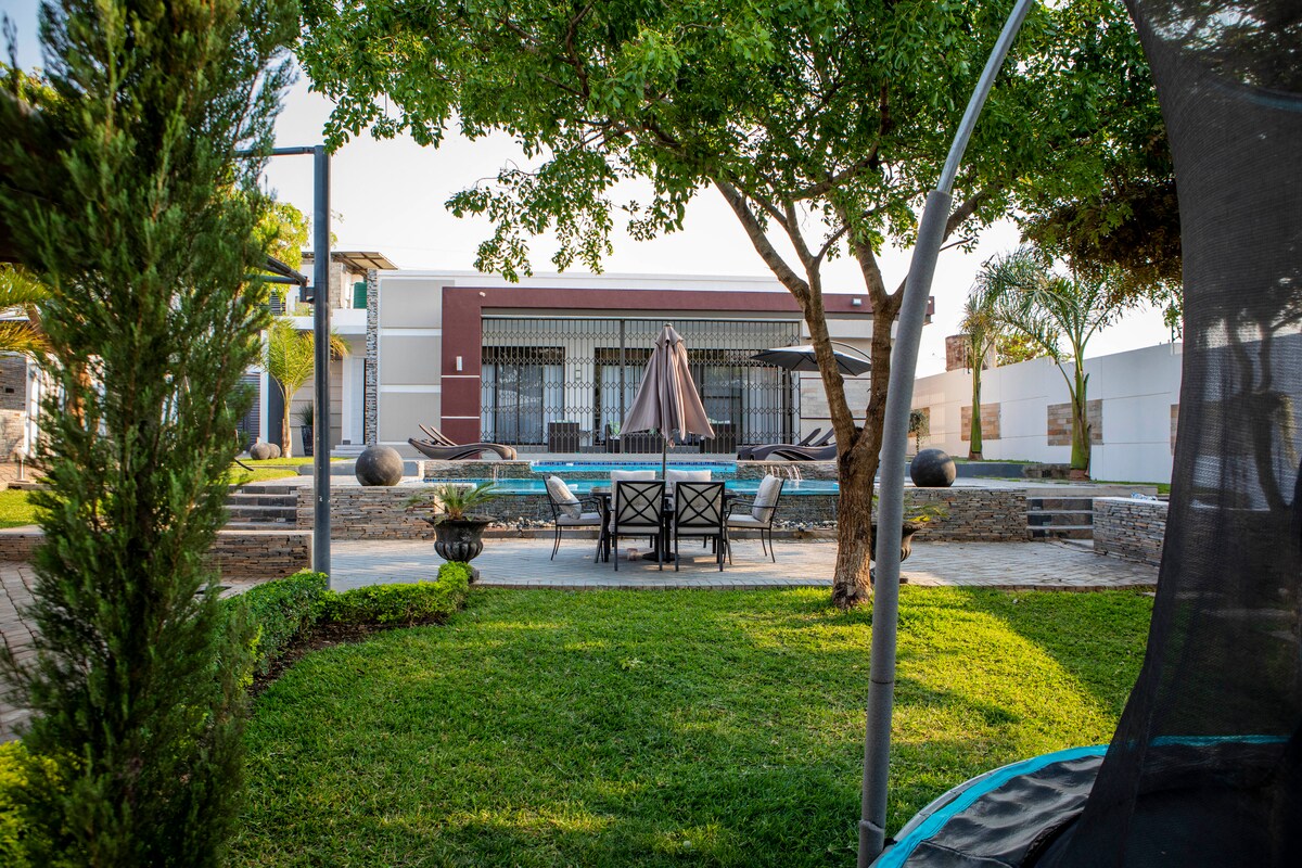 我們為您打造了此房源。 開放式客廳和廚房,配有頂級設施, 3間套房臥室的石地板和木地板。 從地板到天花板的窗戶讓室內/室外感覺不斷。 美妙的11公尺泳池非常適合遊泳。 一個大壁爐,適合寒冷的冬夜,這棟房子坐落在超過2英畝的大自然中,擁有令人驚嘆的本土樹木。 在抵達尚比亞時,您可以在這裡放鬆身心,在家工作或用作基地。