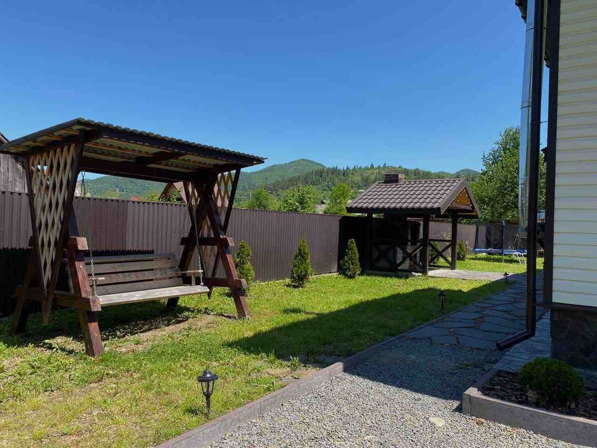 喀爾巴阡山脈的舒適兩層房屋,可欣賞Trostyan和Varshavka山脈的美景。 兩間睡房、一間寬敞的大廳、一個廚房、一個大露台、兩間浴室和舒適住宿所需的一切。 此房源最多可入住6位房客。 可以訂購浴缸(非常接近)。有烤肉區。 房源內有一個火坑,您可以與親朋好友共度溫暖的夜晚。 度過小度假、享受山間寧靜、乾淨空氣和恢復活力的完美場所。