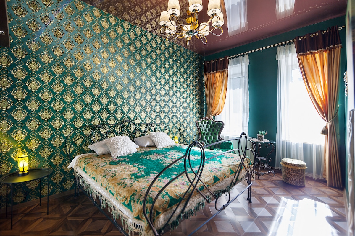 Уютная квартира в центре на тихой улице. Находитися в историческом центре в 300 м от оперного театра. Настоящий камин создает особый уют в зимние вечера