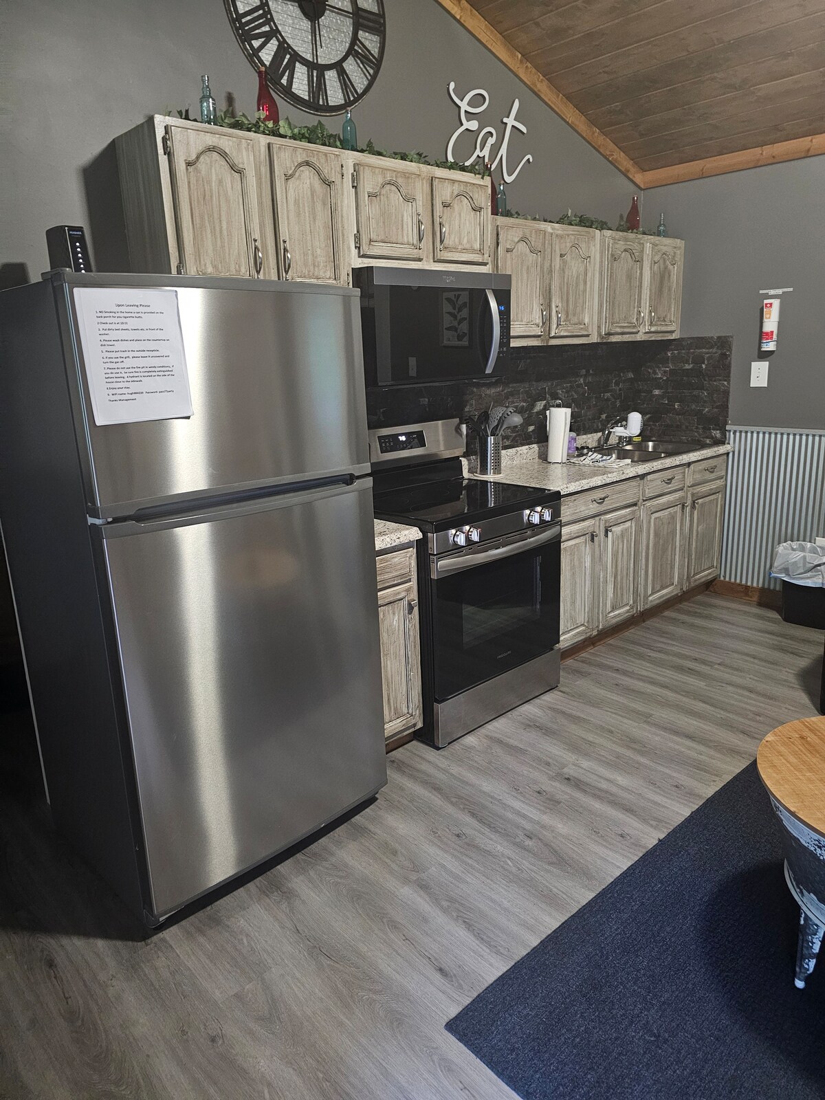 這間新建的小屋建於2007年,並於2019年更新,距離I-24 3英里,位於218,000英畝的肯塔基州巴克利湖( Kentucky-Barkley Lake ) ,位於大河市中心古樸的小湖村( Little Lake Village )分區的林木環境中,並以沿海小屋建築風格完成。