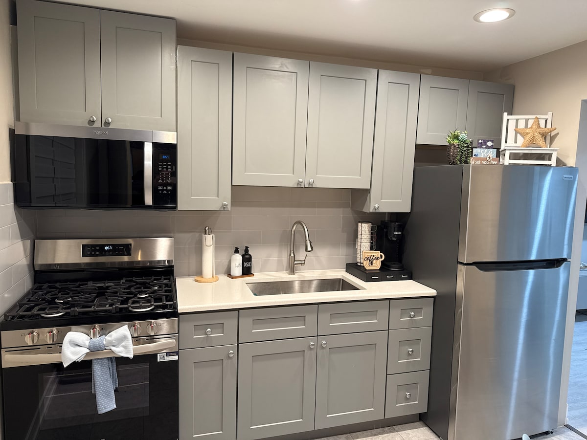 這間獨特的房源風格獨到。享受這間美麗、舒適的客用單間公寓,配有現代化的觸感和設備齊全的起居區域、配有迷你冰箱和微波爐的小廚房,在前往市區之前快速加熱一口,配有淋浴間和手持噴霧器的全功能浴室,幫助您在漫長的一天後放鬆身心。 配有Xfinity串流裝置的平面電視,讓您可以連接帳戶,享受您最喜愛的節目和電影,安靜入住。
