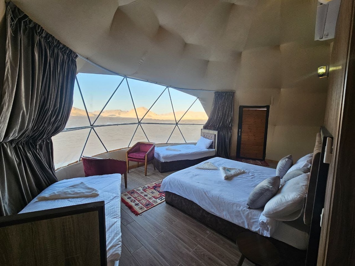 Escape the ordinary and embark on a truly extraordinary desert adventure. Whether you seek soul-stirring landscapes, or Arabian ambiance and authentic Bedouin hospitality, our traditional Deluxe tent promises an unforgettable journey. Book your stay with us and discover the magic of the desert with us in the heart of Wadi Rum!