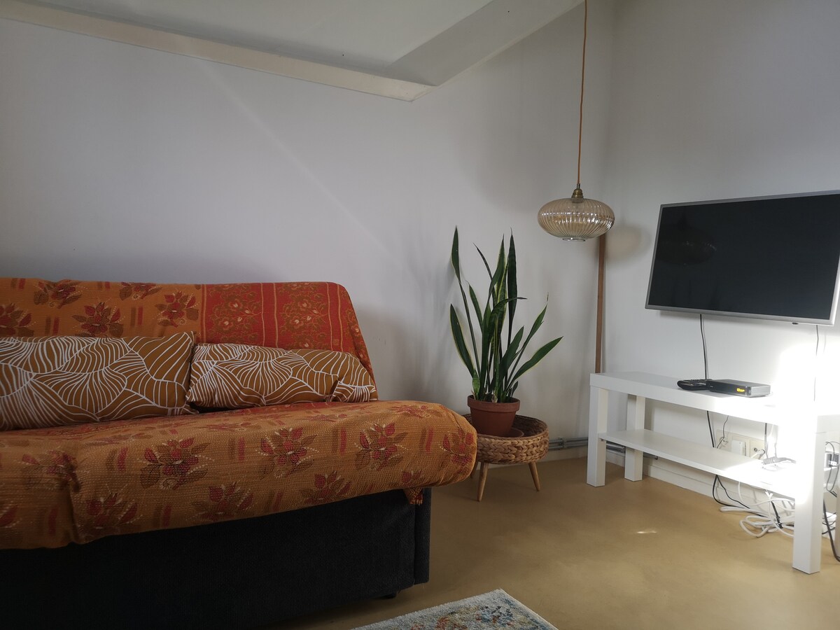 舒適的公寓,75 平方公尺,包括 2 輛自行車。 我們的公寓有一個開放式的客廳廚房、一間配有雙人床的臥室和一個明亮的浴室(淋浴、洗手台、馬桶)。 該公寓位於布魯克倫(Breukelen)郊區的De Vecht河畔,靠近Loosdrechtse Plassen,位於阿姆斯特丹和烏得勒支之間的中心地帶,周圍環境優美,鄉村風光,Vecht河畔有美麗的莊園。 非常適合騎自行車、徒步旅行、乘船遊覽、城市旅遊和釣魚。