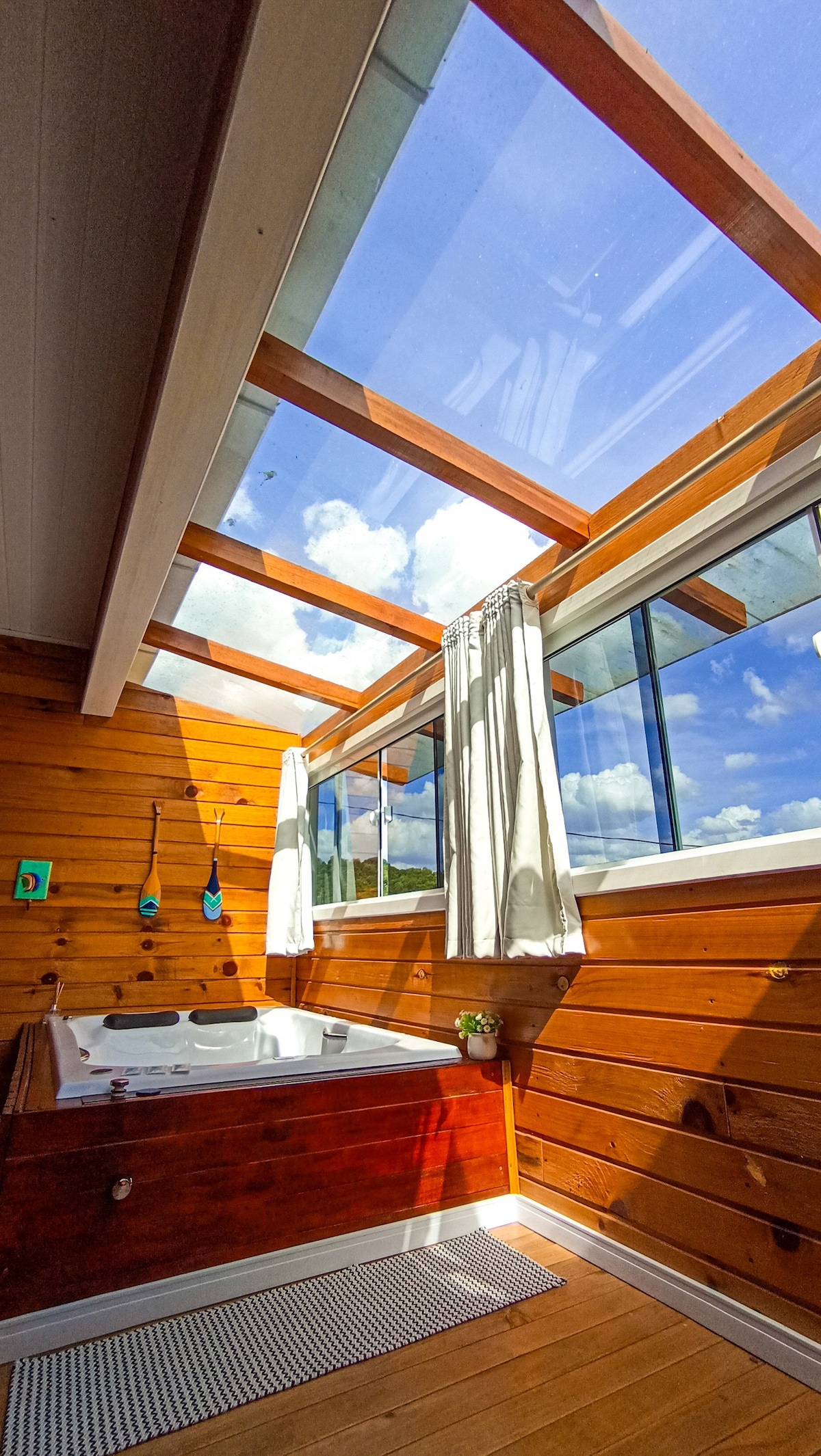 Multitemporada presents AquaTour - SpaBus - Capinzal/SC. A school bus transformed into a cabin offers comfort and adventure, with a heated pool, hot tub, fire pit, and a tranquil river. Enjoy the trail to the waterfall and a fully equipped kitchen – or homemade dishes prepared by partners. The perfect retreat to relax and create unforgettable moments!