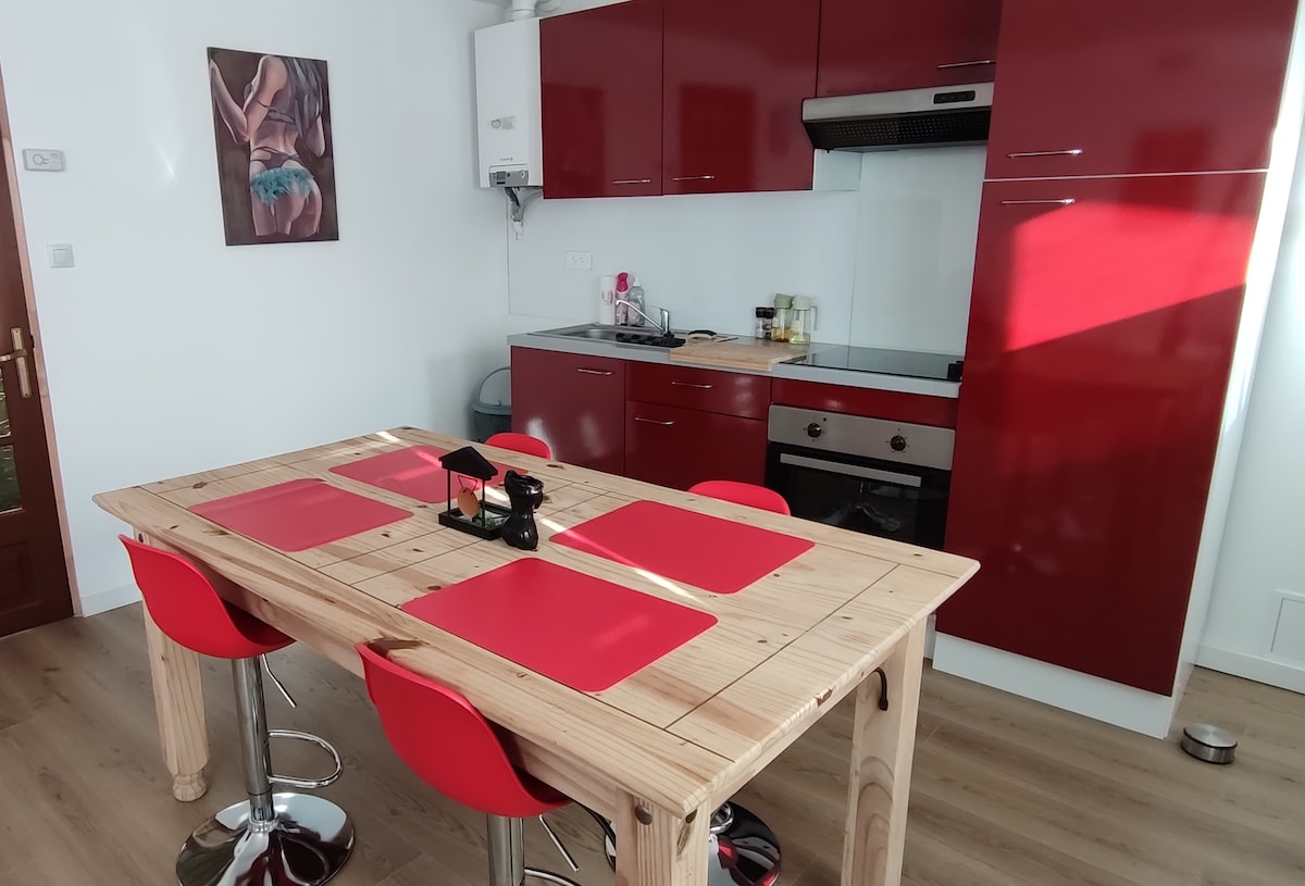 Gite可供30平方公尺的2人入住一棟安全的農舍,位於一樓和一樓,經過全面翻修。 主房間: -就寢區域: 140 X 190牀 -客廳區域,配有沙發、咖啡桌和107厘米智能電視、WiFi -廚房區域:設備齊全的廚房、一張桌子和2把椅子。 浴室:淋浴間和廁所 茶、咖啡、洗碗精、家用、沐浴乳、洗髮精、浴巾、茶巾。 露臺和燒烤 庭院下的電單車停車棚