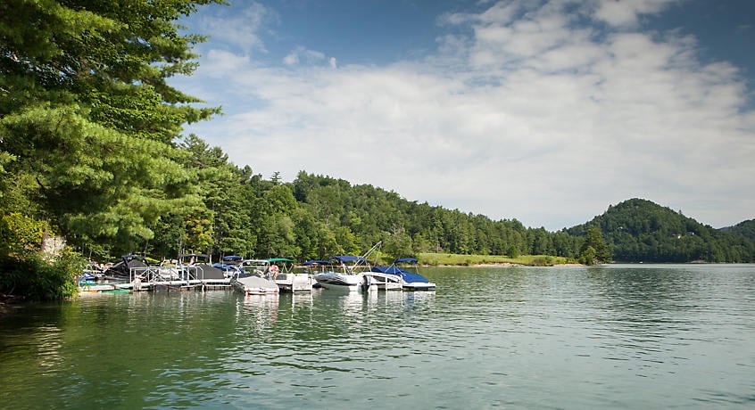 北卡羅萊納州的藍嶺山脈是大自然愛好者的天堂,尤其是那些熱愛探索的人。 遊客喜歡沿著數英裏蜿蜒的溪流和樹林小徑徒步或騎馬,這些小徑通往美麗的瀑布和其他驚喜。 這裡的秋天的顏色與山上的藍色色調形成鮮明對比。 Trillium Links and Lake Club坐落在收銀員鎮附近,這是一個私人社區,佔地750英畝,