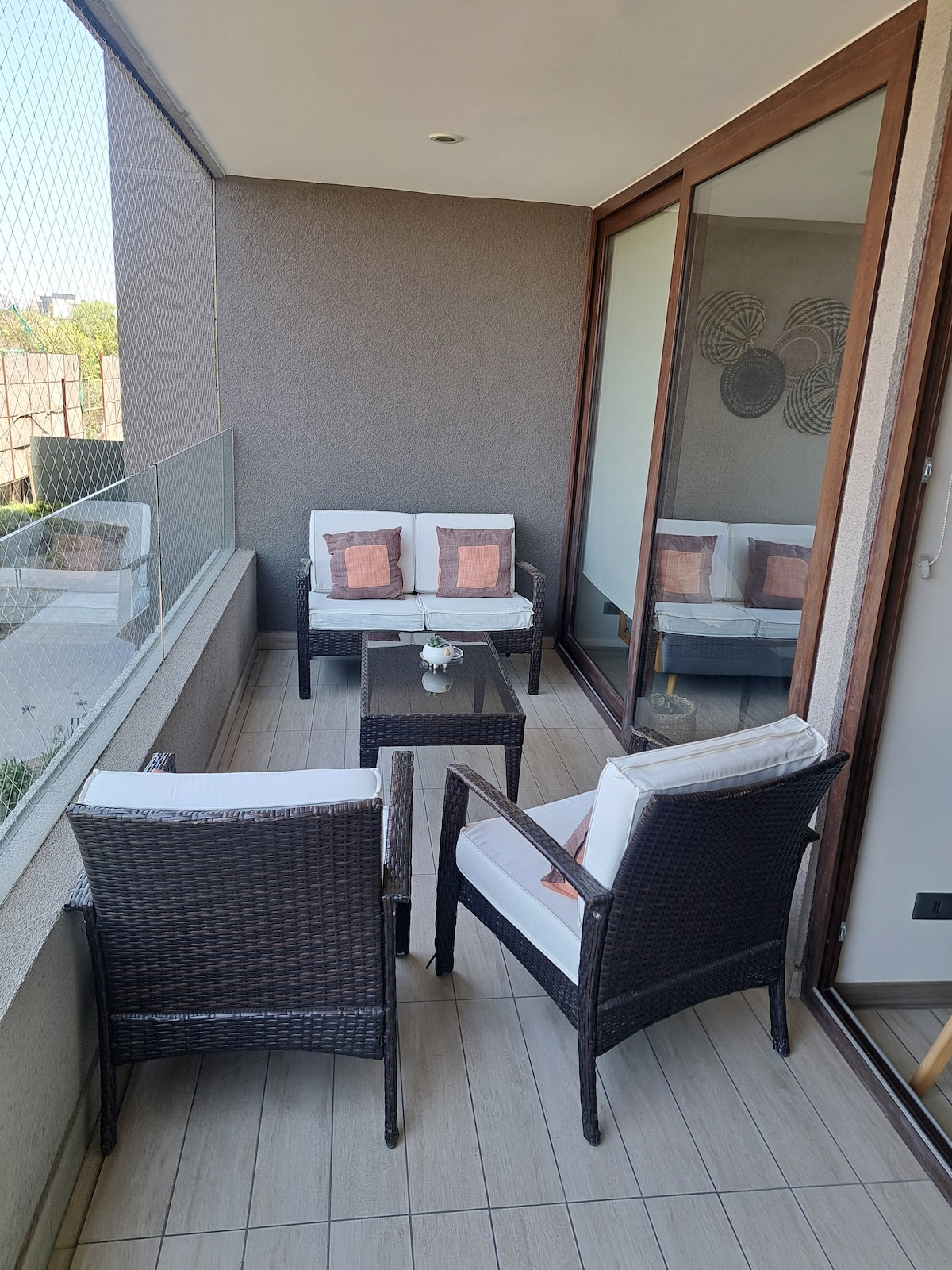 🏡Relájate con toda la familia en nuestro departamento de 2D y 2B full equipado donde la tranquilidad se respira, ubicado en la comuna de Macul a pasos del metro, ideal para descansar, estudiar o trabajar. ✔️Cama 2 plazas ✔️Cama nido 1 plaza ✔️WiFi 940 mbps ✔️Smart TV con Netflix y TV por aplicación ✔️Cocina full equipada ✔️Cafetera con café de grano ✔️Terraza ✔️Aire acondicionado split inverter ✔️Toallas y ropa de cama ✔️Check-in desde 16:00 ✔️Check-out hasta 11:00 Con estacionamiento.