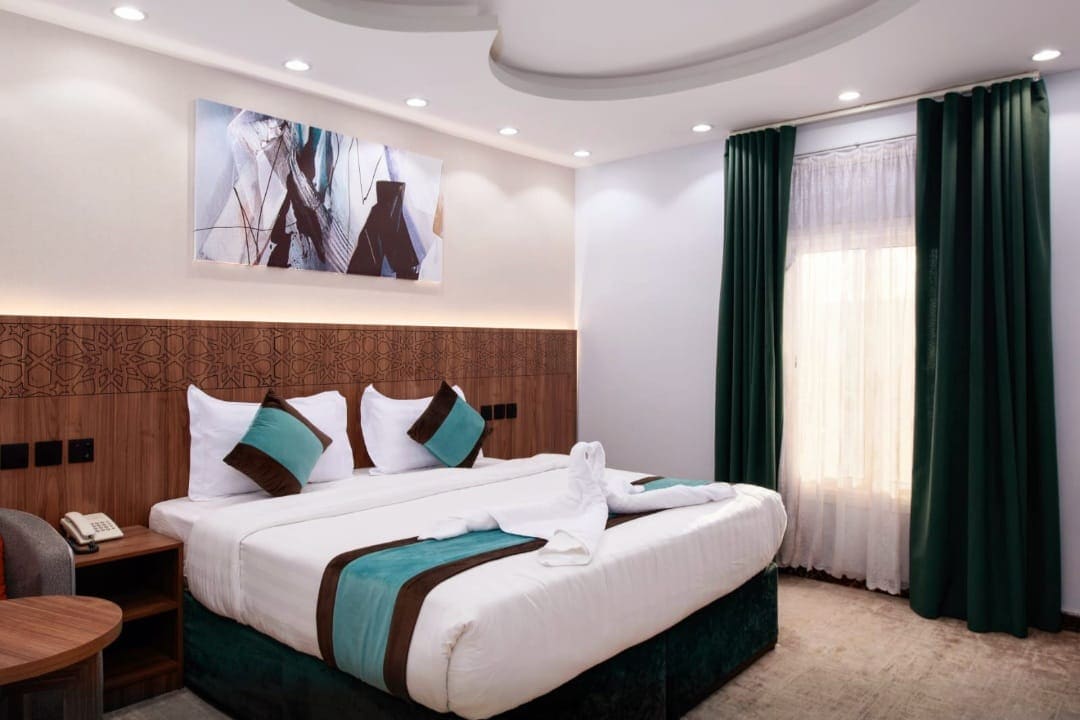 其配備齊全的房間位於Koran Al-Nazel街區,可直接前往先知清真寺,可容納兩人,可俯瞰棕櫚樹。