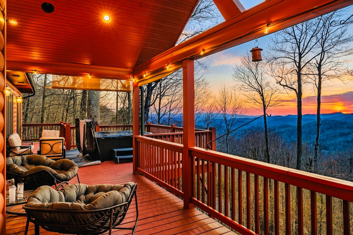 歡迎來到放鬆小木屋! 時尚、新翻修,距離Hatley Pointe僅0.7英里! 在熱水浴缸中泡澡,在桑拿房中放鬆身心,在4,500英尺處欣賞日落和山景。 最多可入住12人。 按摩椅!! 主人房套房的按摩浴池 透過阿巴拉契亞步道探索大禿山,或在附近滑雪、打高爾夫球或玩高空滑索。 奢華、舒適和冒險的完美融合,非常適合家庭、夫妻或團體! 智能門鎖/免鑰匙入口