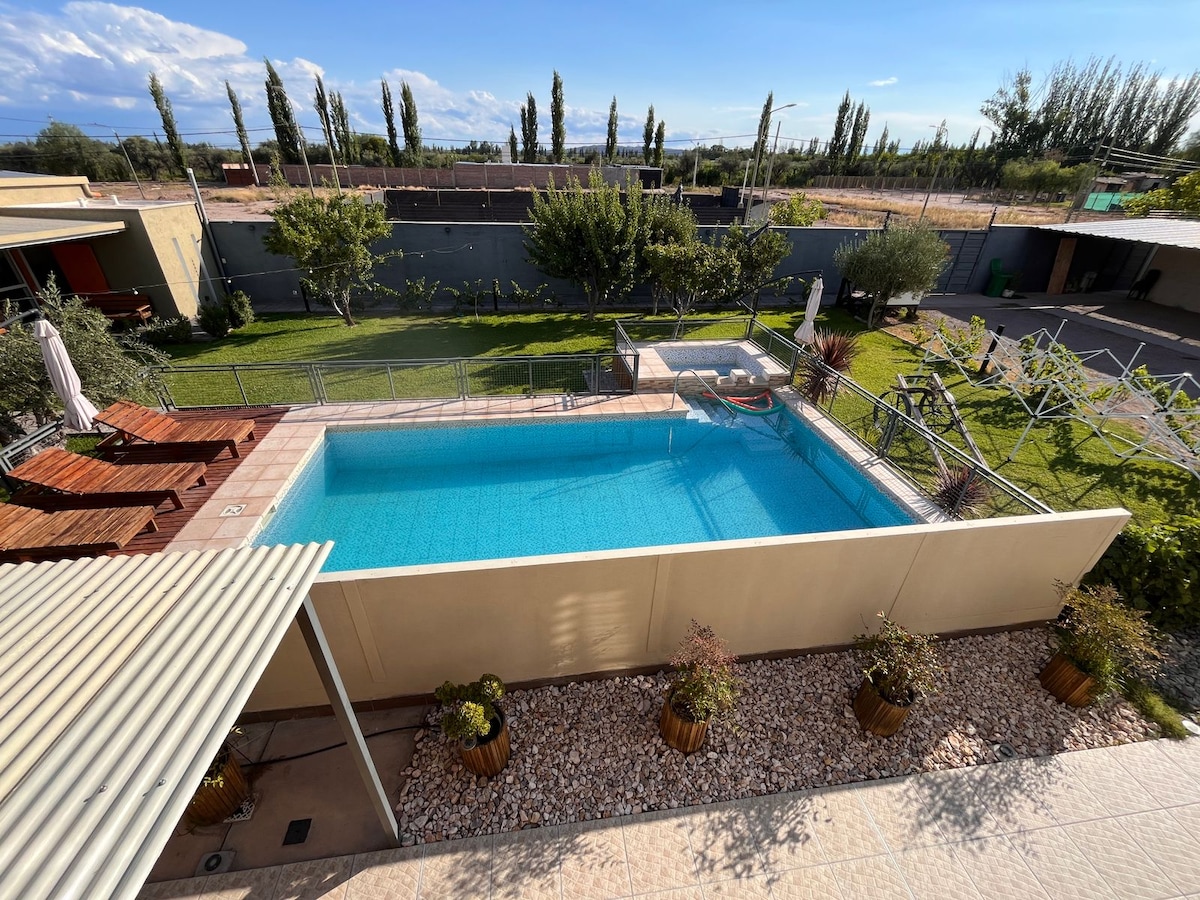 在這個住宿中,您可以呼吸寧靜,您可以在早晨聽到鳥兒的歌聲,感受到Chacras de Coria清新清潔空氣的平靜。 地理位置優越,距離主廣場兩個街區,靠近該地區最好的酒莊和餐廳。 您可以從火車站、教堂、老房子和大型公園四處走走,探索Chacrense村的所有寶藏。 與全家人一起放鬆身心!
