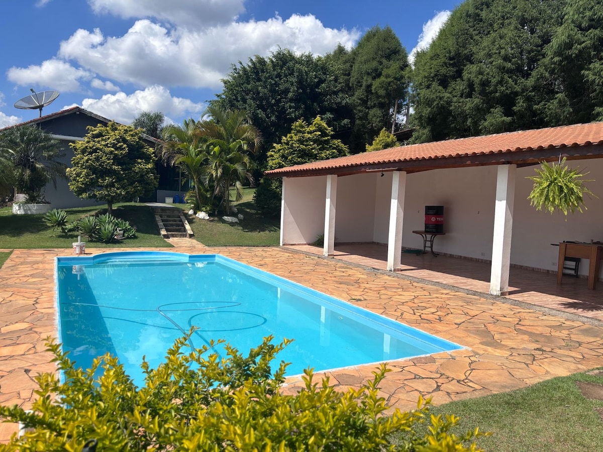 客用住房,配有大型砌體泳池和按摩浴缸式泳池,配有水上酒吧和太陽能加熱!設備齊全的健身房、配有燒烤架、烤箱和燒木爐的美食區、撞球桌、配有啤酒機和啤酒廠的私人酒吧、篝火區/火坑、吊床區、俯瞰釣魚湖和錦鯉觀賞湖的高級木製露台! 帶上您的家人,在大自然中放鬆身心,距離聖保羅40分鐘!