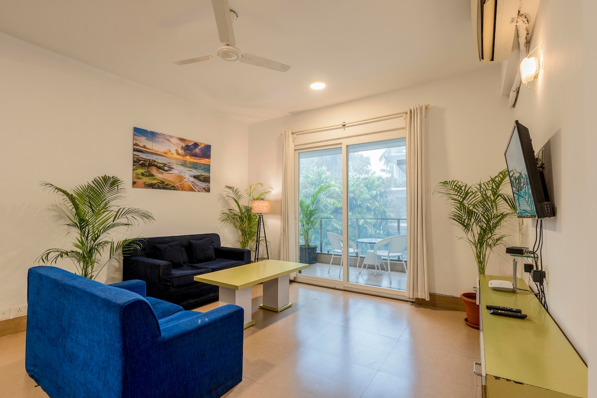 歡迎來到科爾瓦! 在我們設備齊全、寬敞的 2 房公寓中體驗舒適的住宿,距離著名的科爾瓦海灘僅 300 公尺。 我們的房源位於一樓,可欣賞美麗的田野景觀,並配備設備齊全的廚房、洗衣機、熨斗/熨衣桌、24小時熱水、衣櫃內的保險箱和所有房間的空調。社區提供備用電源、游泳池、充足的安全停車位和24小時保安,並配有閉路電視,以保障您的安全。