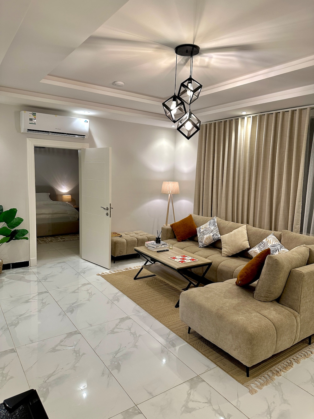 غرفتين نوم وصالة حديثة شاشة 75بوصة