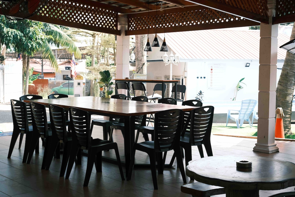 僅限穆斯林的私人寄宿家庭 我們提供泳池、停車場空間、安全監控空間、燒烤和廚房、遊戲室和卡拉OK ,還有羽毛球場空間。 讓我們入住吧,您必須與親朋好友一起嘗試一下吧。 當時最多可入住25人。