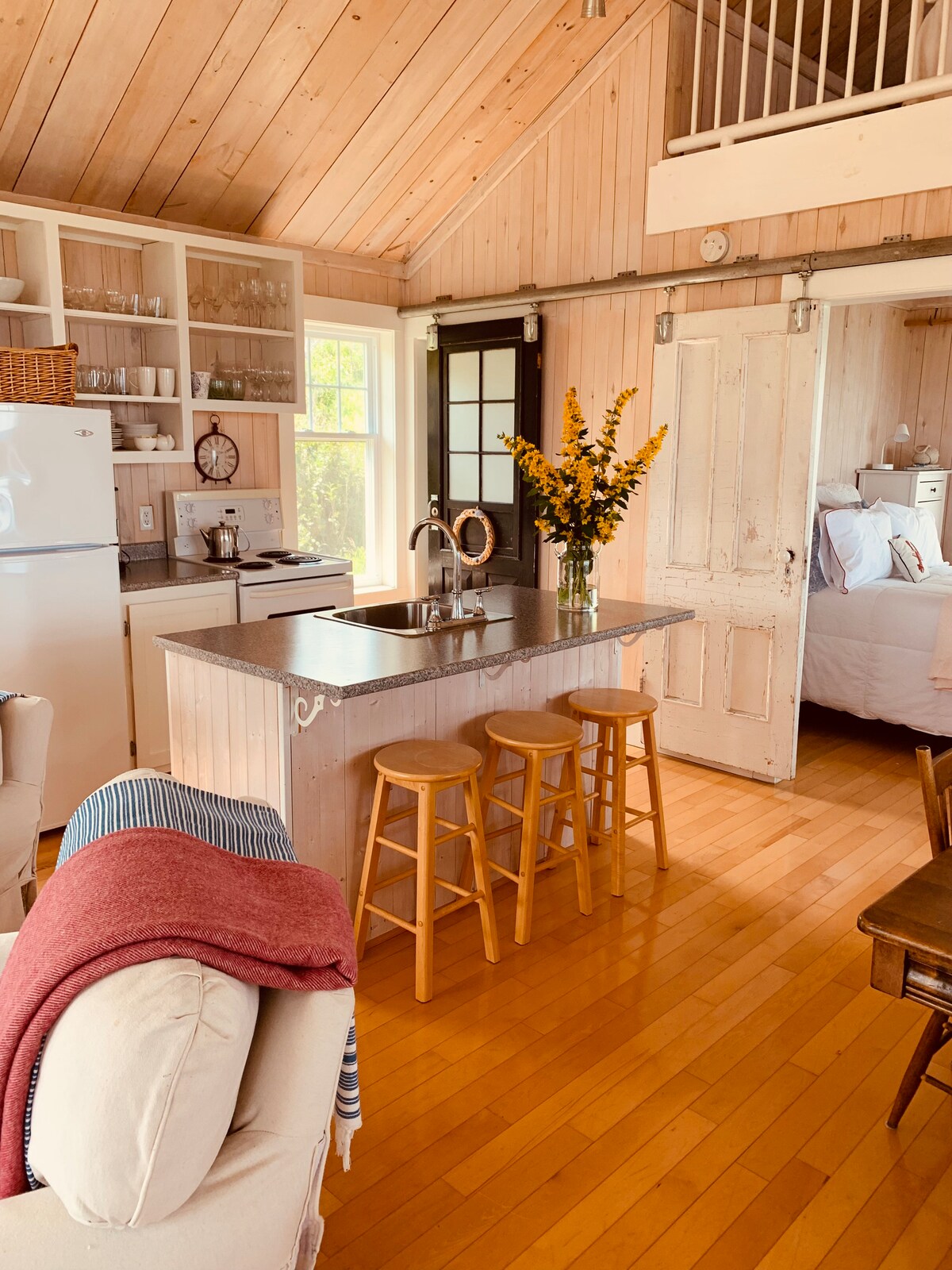 這個迷人的單間公寓位於一個工作農場,位於新翻修的1800農場房屋的樓上。 享受暴露的筏子、小廚房、獨立浴室、配有浸泡浴缸的四件式浴室和獨立一件式淋浴間。 在手工制作的羊毛被子下睡一晚。 這是一個工作農場,有田野中的奶牛、雞羣(公雞烏早期! )和高山乳山羊。 距離StFX大學和Antigonish市中心僅4公裏。