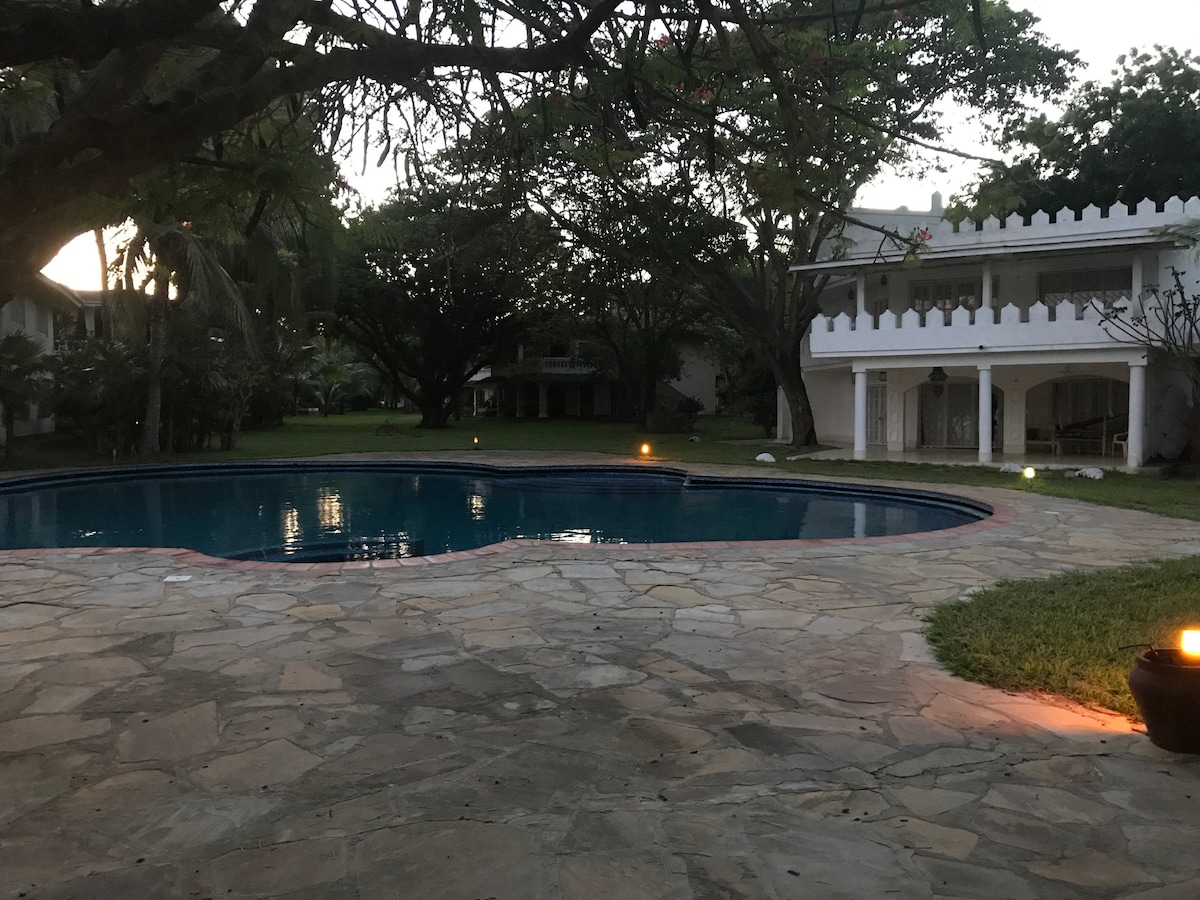 Traditional Swahili style house, stands on coral headland overlooking sea, beach, beautiful flowering gardens, private access to beach. Swimming pool recently installed, SEE HOUSE RULES Villa has 2 levels & views of Indian Ocean, private direct access to the beach, which stretches out either side, within the Marine Park. Includes 3 staff, cook, and daily room service, and gardener. Sleeps up to 10. Easily adapted and made comfortable to host smaller groups, by using just the upstairs bedrooms.