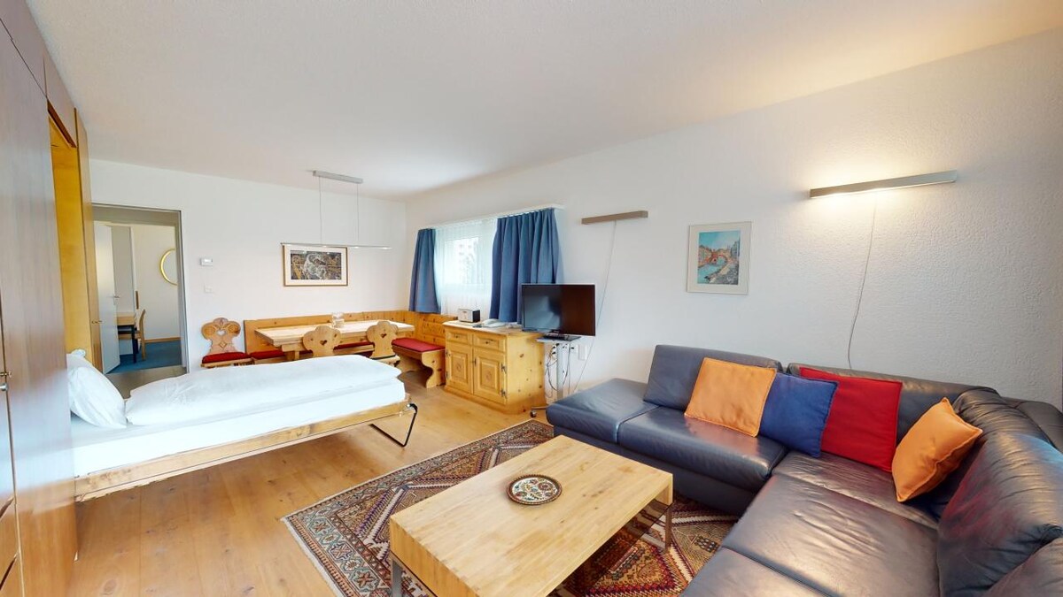 從聖莫里茨村中心開車5分鐘。 公寓配有160 x 200公尺的床、起居區、設備齊全的小廚房、用餐區和現代化的翻新浴室。從陽臺欣賞恩加丁的景致。 飯店設施(歐洲飯店),包括泳池/水療/健身設施可免費使用(10 月中旬至 12 月初/4 月中旬至 6 月初)。最近的滑雪纜車距離5分鐘車程。 高速網路、智慧喇叭、Netflix。