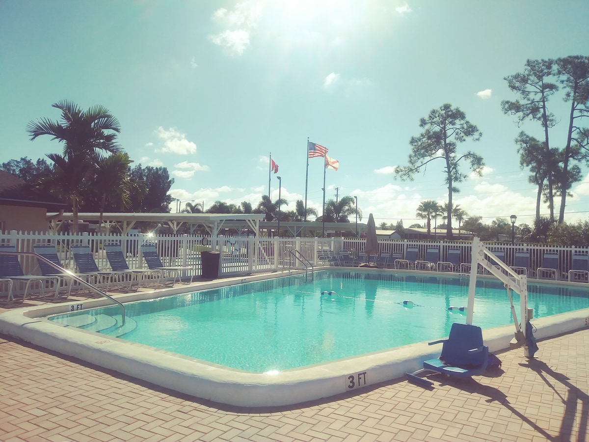 在這個寧靜的住處與家人一起放鬆身心。 位於距離安娜瑪麗亞島(Anna Maria Island)6.5英里的移動房屋/露營車公園,提供海灣沿岸最美麗的海灘。位於聖彼得堡和 彼得堡和Siesta Key。 這個適合兒童入住的社區提供許多設施,如匹克球、游泳池、沙狐球、馬蹄鐵和健身房。 入住幾天或幾個月!歡迎雪鳥! 距離薩拉索塔機場僅3.3英里。