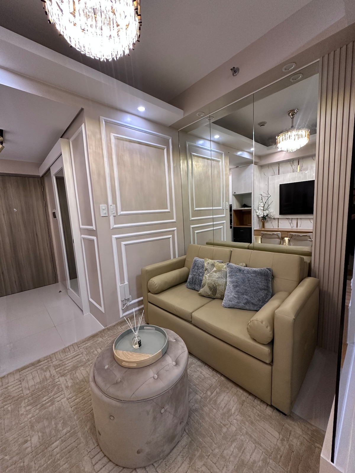 從這間位於曼達盧永的時尚29平方公尺1BR角落單位欣賞17樓的壯麗景色,非常適合工作、數位遊牧或放鬆。步行即可抵達Greenfields、SM Megamall、香格里拉和MRT Shaw , Casa Eleganza是您探索馬尼拉的理想基地。 精選設備與服務: ✔雙人床+沙發床(可睡 4 人) ✔55 吋智慧電視,配備 Netflix 和 Spotify ✔100 Mbps WiFi ✔陽臺可欣賞美景 ✔泳池、戶外健身房、慢跑步道 ✔靠近商店、餐廳和交通工具 ✔免費咖啡、水、盥洗用品