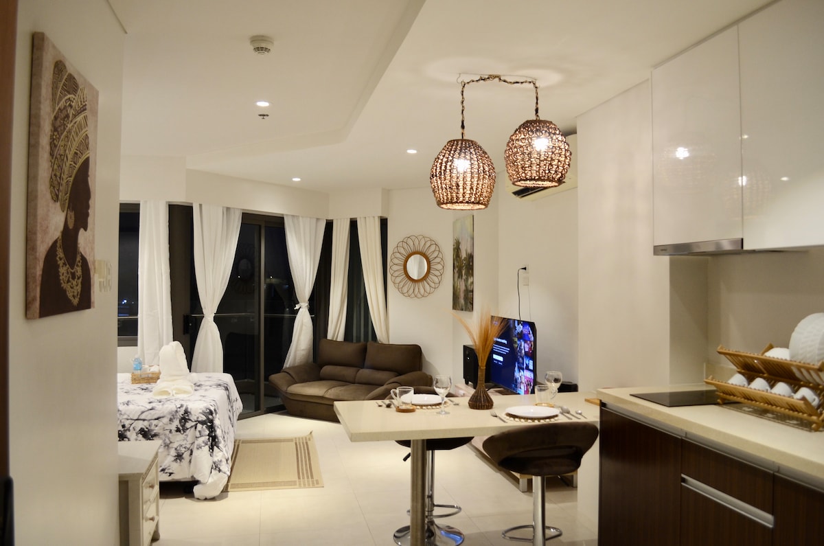 我們新裝修的 1 間臥室套房提供舒適和便利。它有一間大臥室,有獨立的客廳、餐廳和全功能廚房。 位於Quest Hotel,您可以輕鬆使用水療中心、泳池、健身房和商務中心等設施。在飯店的餐廳享用美味的自助餐,盡情享受多樣化的口味。也有室內用餐服務。 我們就在Ayala Center Mall對面,靠近旅遊景點。此地點非常適合商務旅客和遊客