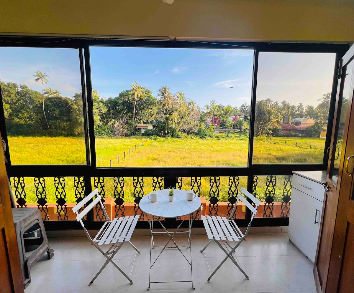 果阿西奧利姆(Siolim)可愛舒適的河畔單間公寓 這間迷人而寬敞的單間公寓位於Siolim市中心,毗鄰河流,距離Morjim海灘的沙灘僅13分鐘車程。 生活百貨商店和餐廳僅需步行5分鐘即可抵達。 Thalassa、Kiki by the sea等熱門景點和其他知名派對場所均在10分鐘車程內,非常適合希望享受寧靜早晨和熱鬧夜晚的旅人。
