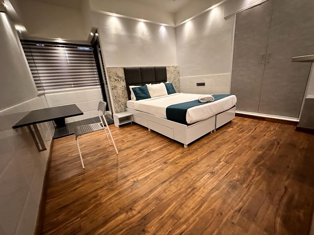 靠近亞洲鳳凰購物中心和赫巴爾交叉口的按摩浴缸住宅公寓的獨立房間 成人和兒童泳池、健身房、花園和陽台日光浴。 舒適的床墊和黑色窗簾,可讓2位成人和1位大孩子在雙人床上深度睡眠。嬰兒便攜式床、私人陽臺和浴室。 WFH旋轉辦公椅、桌子、書架和高速WiFi 額外費用:早餐每人 90 盧比,空調使用 500 盧比/天,泳池/健身房每次使用 1000 盧比。按摩浴缸每20分鐘使用600盧比