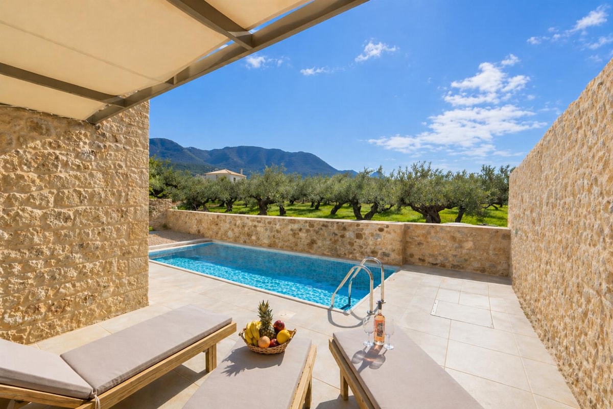 位於梅西尼亞阿諾里利亞(Ano Riglia)的獨特石屋,面積130平方公尺,四周環繞著美麗的按摩浴池。保留了傳統風格的石牆和外露的木樑,但裝飾現代且簡約。此獨棟房屋最多可供 6 人舒適入住,適合兒童入住。